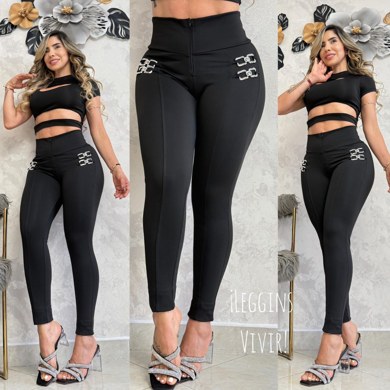 Leggins negros con detalles metálicos laterales. Modernos, cómodos y con ajuste perfecto.